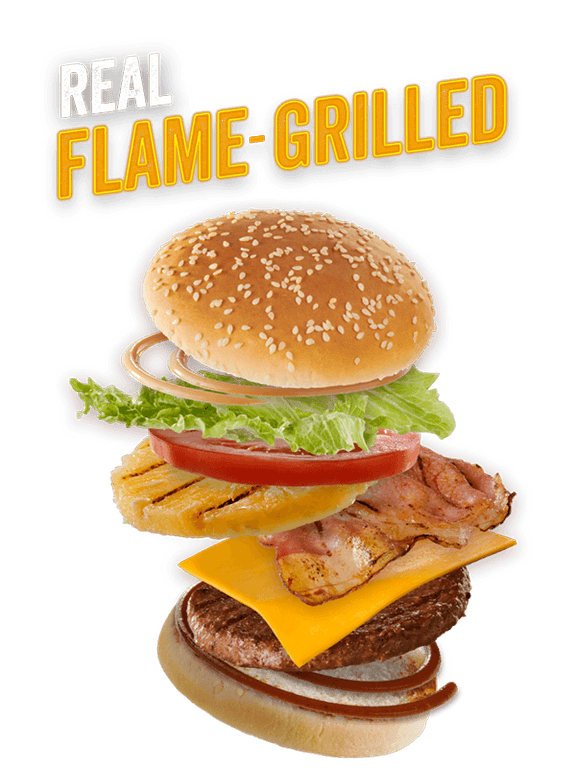 You don’t have to spend more cheese to get mo’ cheese on your Flame-Grilled favourite. Grab our Mo’ Cheese burger to enjoy a 100g ground beef patty topped with bacon, a cheese slice, lettuce, tomato, diced onions, dills, drizzles of mustard, mayo, cheese sauce and our famous BBQ sauce. Enjoy it with a small portion of our Famous Hand-Cut chips.